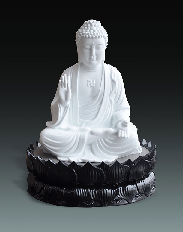 釋迦牟尼佛尊為佛陀、佛祖、本師。釋迦牟尼佛解脫世間眾生,大悲大智。湖南大球泥瓷藝有限公司承造的釋迦牟尼佛塑像,運用國家非物質(zhì)遺產(chǎn)——醴陵窯燒制技藝并選用當(dāng)年制作“國宴瓷”的稀有原料“大球泥”制作,實現(xiàn)醴陵陶瓷藝術(shù)與雕塑藝術(shù)的完美結(jié)合,展示了當(dāng)代瓷雕藝術(shù)的無窮魅力,彰顯出大球泥瓷藝無與倫比的輝煌氣度。
