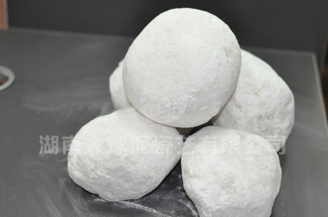 大球泥和小球泥是一對(duì)“雙胞胎”,系偉晶巖風(fēng)化的殘余物,礦石名為高嶺土,礦石有大球、小球之別,大球直徑10—40厘米,小球直徑3—4厘米。大小球泥一身潔白,過(guò)去長(zhǎng)期隱藏在湖南湘西深山老林之中,過(guò)著與世隔絕的“地下生活”。