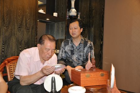 5月23日上午,毛主席警衛、原湖南省委接待處長蕭根如再次到湖南大球泥瓷藝有限公司。他十分認真地凝視我公司即將推出的一款毛主席浮雕像說:“太好了,很有神韻!我看了那么多主席瓷像,你們制作的很有精氣神!你們這個事做得很好,很有意義。我也很樂意來做你們公司的顧問。”