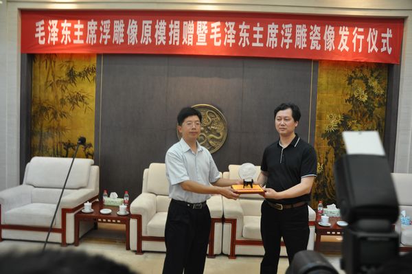 8月1日,湖南大球泥瓷藝有限公司在韶山毛澤東同志紀(jì)念館舉辦“毛澤東主席浮雕像原模捐贈(zèng)暨毛澤東主席浮雕瓷像發(fā)行儀式”。紅色雕塑家張松鶴1965年創(chuàng)作的毛澤東主席浮雕像原模、當(dāng)年制作毛澤東主席生活用瓷的主要原料——大球泥樣本、當(dāng)天首發(fā)的限量版毛澤東主席浮雕瓷像0001號(hào)瓷盤(pán)被捐贈(zèng)給韶山毛澤東同志紀(jì)念館收藏陳列。
