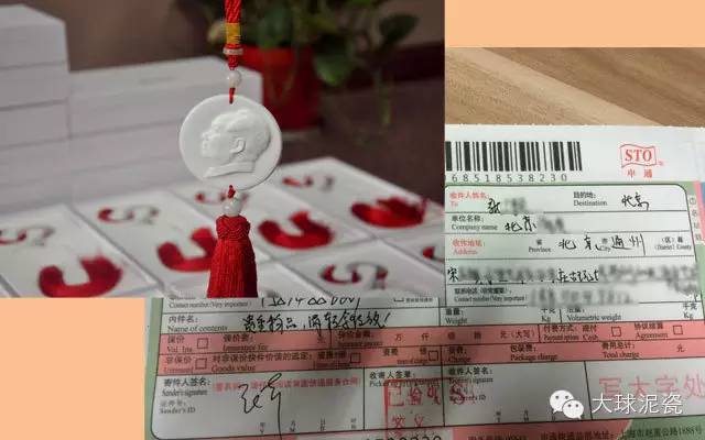 大球泥瓷藝公司發(fā)行的“金邊《毛澤東主席浮雕瓷像》、《毛澤東主席浮雕瓷像》車掛件、《毛澤東主席浮雕瓷像》小像章、《青年毛澤東主席瓷像》(橘子洲雕塑像)及《習(xí)仲勛同志瓷塑像》”形成了新的一股收藏?zé)岢保∵@不,公司的小伙伴們正忙著往北京快遞上百件《毛澤東主席浮雕瓷像》車掛件呢!