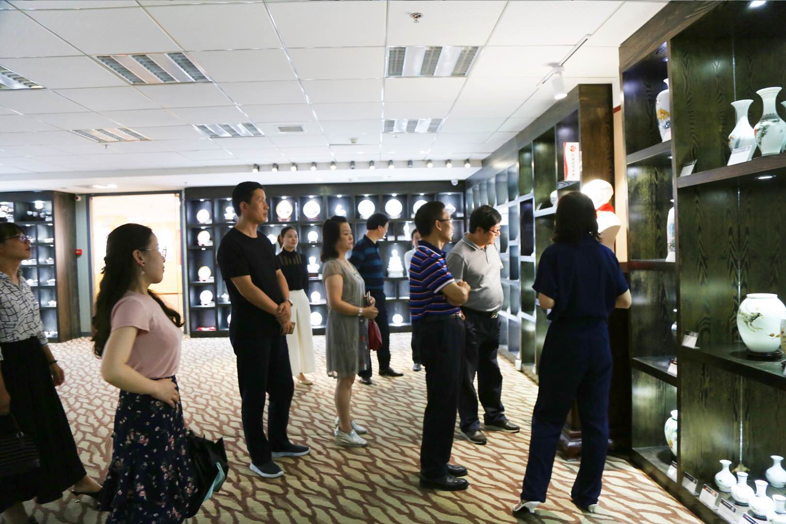 在會議室的交流中,何建輝副會長表示,這次考察很大程度上開拓了眼界,增長了知識,也知曉了大球泥多年在行業內深耕的不容易,滕總多年在公司上經營的付出,組建了一個優秀團隊,形成了一批有利資源,強化了多家合作單位,大球泥偉大的愿景一定能早日實現。目前景德鎮陶瓷行業發展已經到了急需轉型的時候,7月初,習近平總書記視察江西時要求我們建好景德鎮國家陶瓷文化傳承創新試驗區,打造對外文化交流新平臺,第16屆中國景德鎮國際陶瓷博覽會也將于10月份在景德鎮國際會展中心隆重舉行,屆時,還將舉辦景德鎮國際陶瓷燈會,希望滕總帶領的大球泥瓷藝團隊成員能一起到江西考察,加強并促進與景德鎮陶瓷的交流與互相學習。