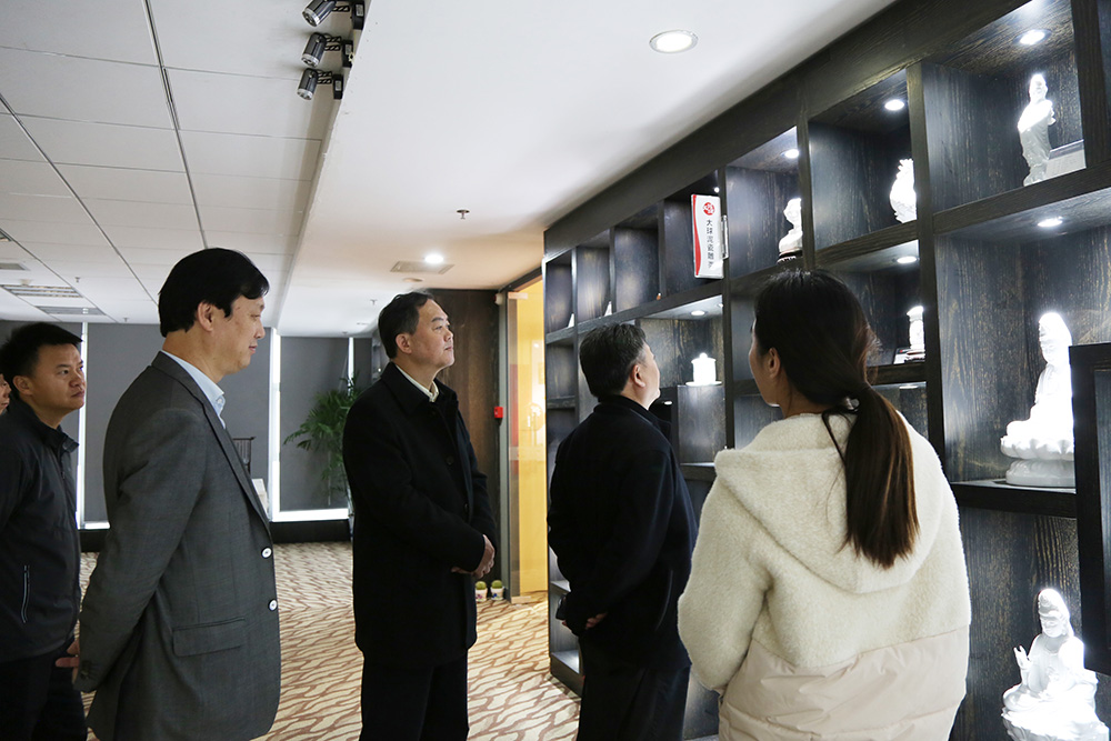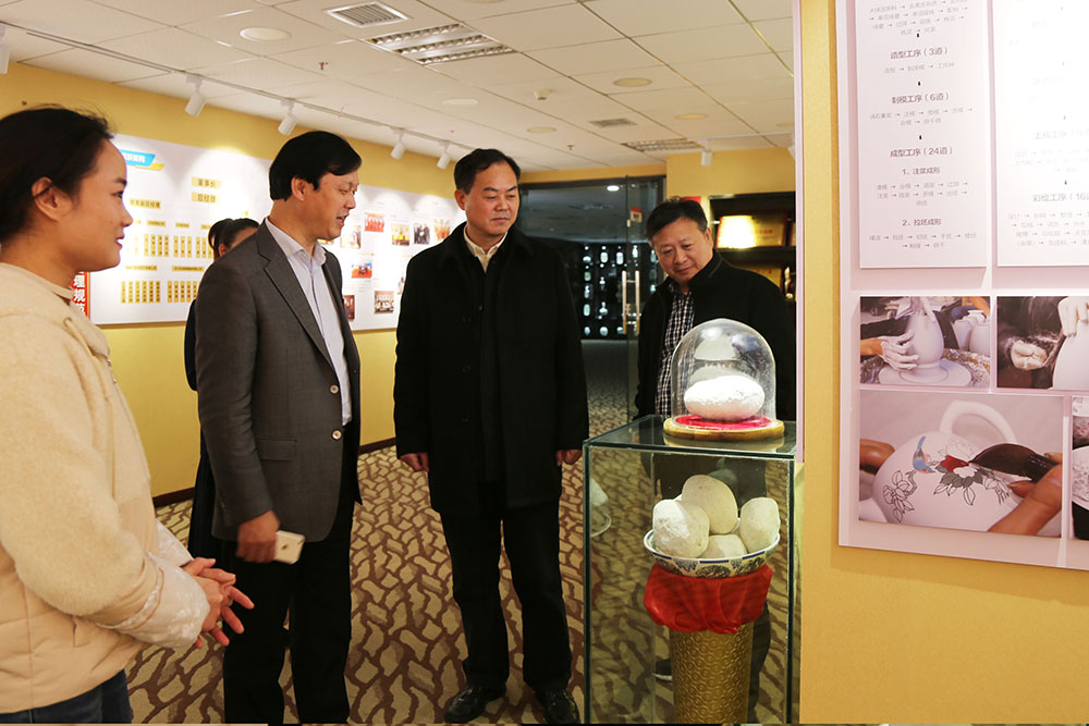 12月16日下午,省商務服務中心黨委書記、主任毛七星到大球泥瓷藝開展調研,全球異地商會執行會長陳煒等陪同考察。