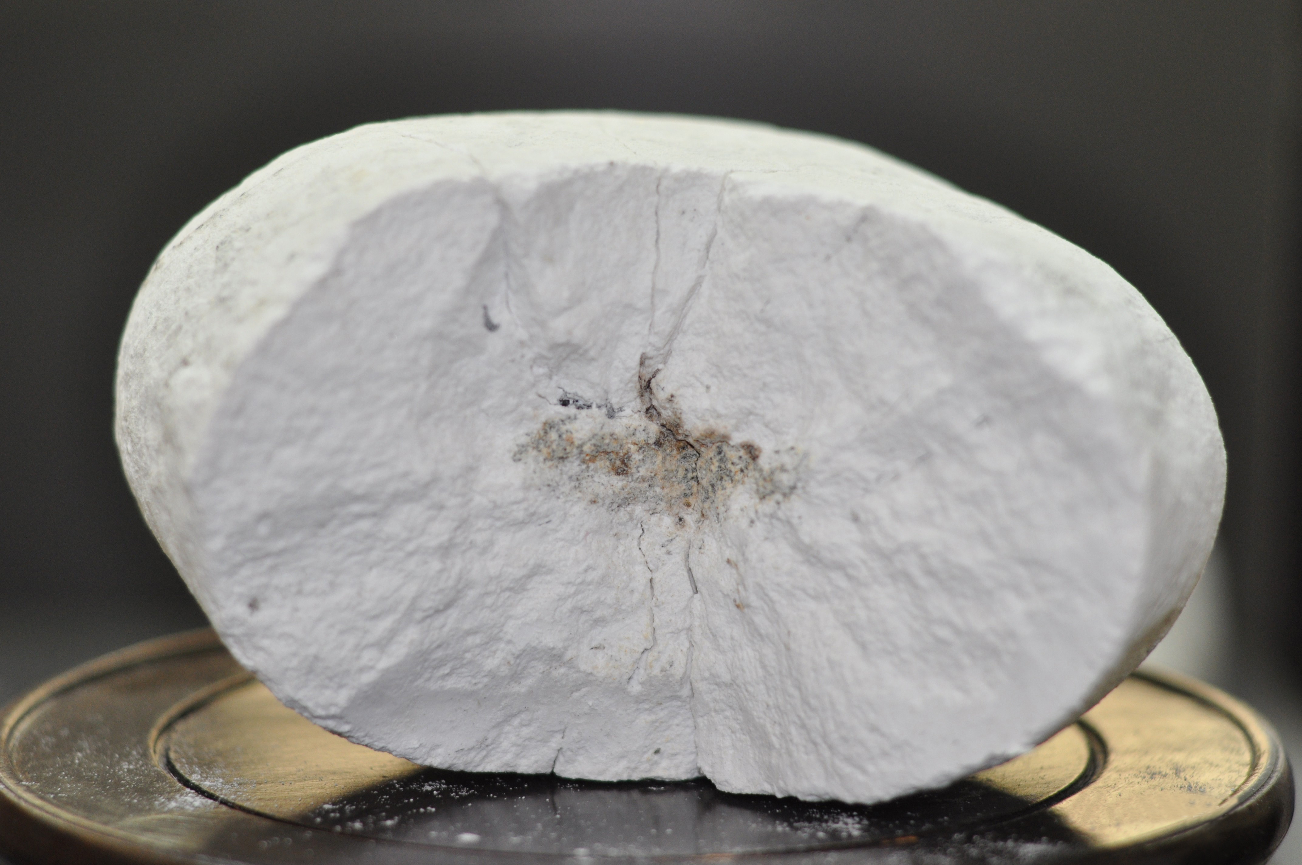 見過大球泥的人都會問,這種雪白球狀的礦物質是天然形成的還是后天制作成球狀的?答案肯定是天然形成的。因為每一坨中間都有一個核,是氧化鐵、氧化錳、電氣石等雜質。當今也有人把鉀長石、鈉長石冒充大球泥這種原料,但它是堅硬的帶棱角,也不是自然球體狀。真正的大球泥是已經風化了的球形狀,砸開后結構致密、成小塊狀、一捏成粉。也有人做假將瓷泥揉成球狀,人工合成的沒有分明層次,輕輕一捏就散了。要辨別是不是做假合成或是長石礦石,拿實物敲散驗證一下就知道了。