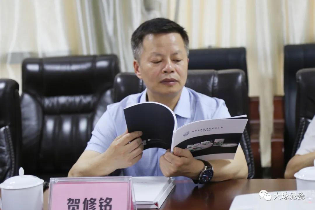 在會議室匯報時,滕董從公司基本概況、前八年基礎研究、后八年生產經營、請求解決問題等四大方面作了匯報。重點匯報了公司成立八年來工作:制訂一個標準既《大球泥瓷》地方標準,編制了一個規程既《大球泥瓷生產操作規程》,獲得百項專利,納入四個國家扶持既國家文旅部重點項目扶持、國家服務業標準化試點、國禮指定供應單位、國家高新技術企業,取得三個省級基地既省特色文化示范基地、省雙創示范基地、省新材料企業,兩個校企合作既與湖南大學和湖南工業大學產學研合作,開發生產了六大產品,延展了兩個業務既公共文化藝術工程和文旅項目策劃。滕董最后提出四個請求:申報省科技進步獎,承擔國家陶瓷材料研究課題,建立院士工作站,申報專項扶持項目。