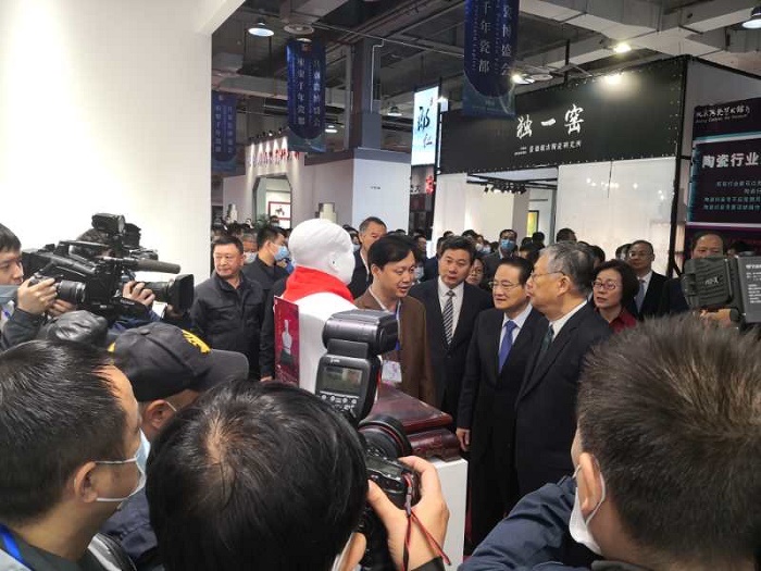 10月18日上午,第十七屆中國景德鎮國際陶瓷博覽會正式開幕。全國政協副主席劉新成,江西省委副書記、省長易煉紅,中國貿促會副會長柯良棟,中國輕工業聯合會副會長、中陶瓷協理事長杜同和,江西省委常委、副省長吳忠瓊,原國務院國有重點大型企業監事會主席謝鐘毓,江西省商務廳廳長謝一平,景德鎮市委書記鐘志生、市長劉鋒等領導出席。世界各地藝術家,新聞媒體記者以及來自世界各產瓷區的參展商、采購商等5000余人參加展覽活動。大球泥瓷藝重點受邀,攜百余件經典作品亮相A1館。