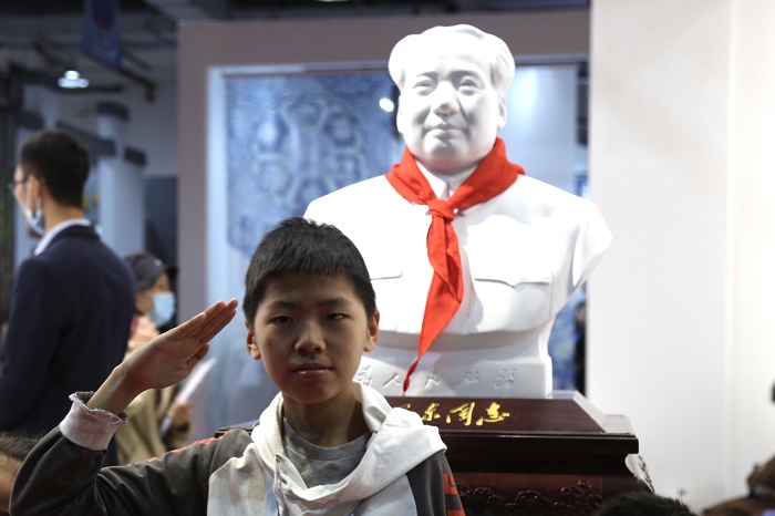 “來來來,給我與主席拍個照”。在毛澤東主席瓷像前總是排著隊,這些五六十年代的人,從出生時就飽含對主席的深情。也有很多新生代,對主席十分敬仰。
