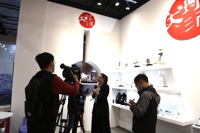 大球泥瓷藝展館的獨有特性,還獲得一眾媒體記者、網紅大咖的青睞,對大球泥重點推介與現場報道層出不窮,更有許多業內專家前來學習交流,可謂人氣”爆棚“!