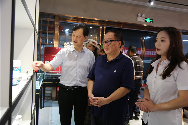 開(kāi)幕式后,肖雅瑜主任一行進(jìn)行巡館,滕會(huì)長(zhǎng)全程陪同。此次展出的作品內(nèi)涵豐富、寓意深遠(yuǎn),既有湖湘特色又有黨建紅色,生動(dòng)地反映了建黨100周年來(lái)的歷史成就,很好地彰顯了湖南民營(yíng)文化企業(yè)的藝術(shù)張力。