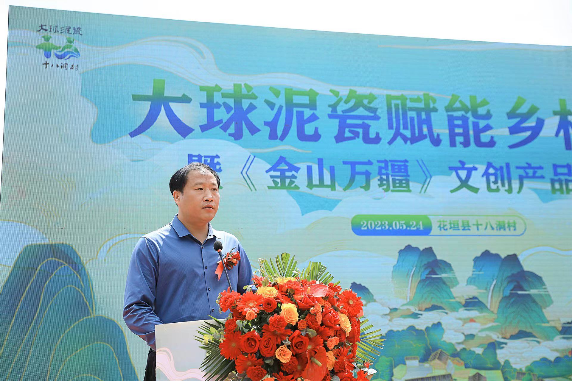2023 年 5 月 24 日上午,大球泥瓷賦能鄉村振興暨《金山萬疆》文創新品發布會在花垣縣十八洞村村部舉行。省文旅廳三級調研員劉彬、長沙市委宣傳部四級調研員何小紅、湘西州文旅廣局副局長呂冠軍、花垣縣委常委、宣傳部長滕召帆、十八洞村委會副主任、經濟聯合社理事長龍書優等出席。