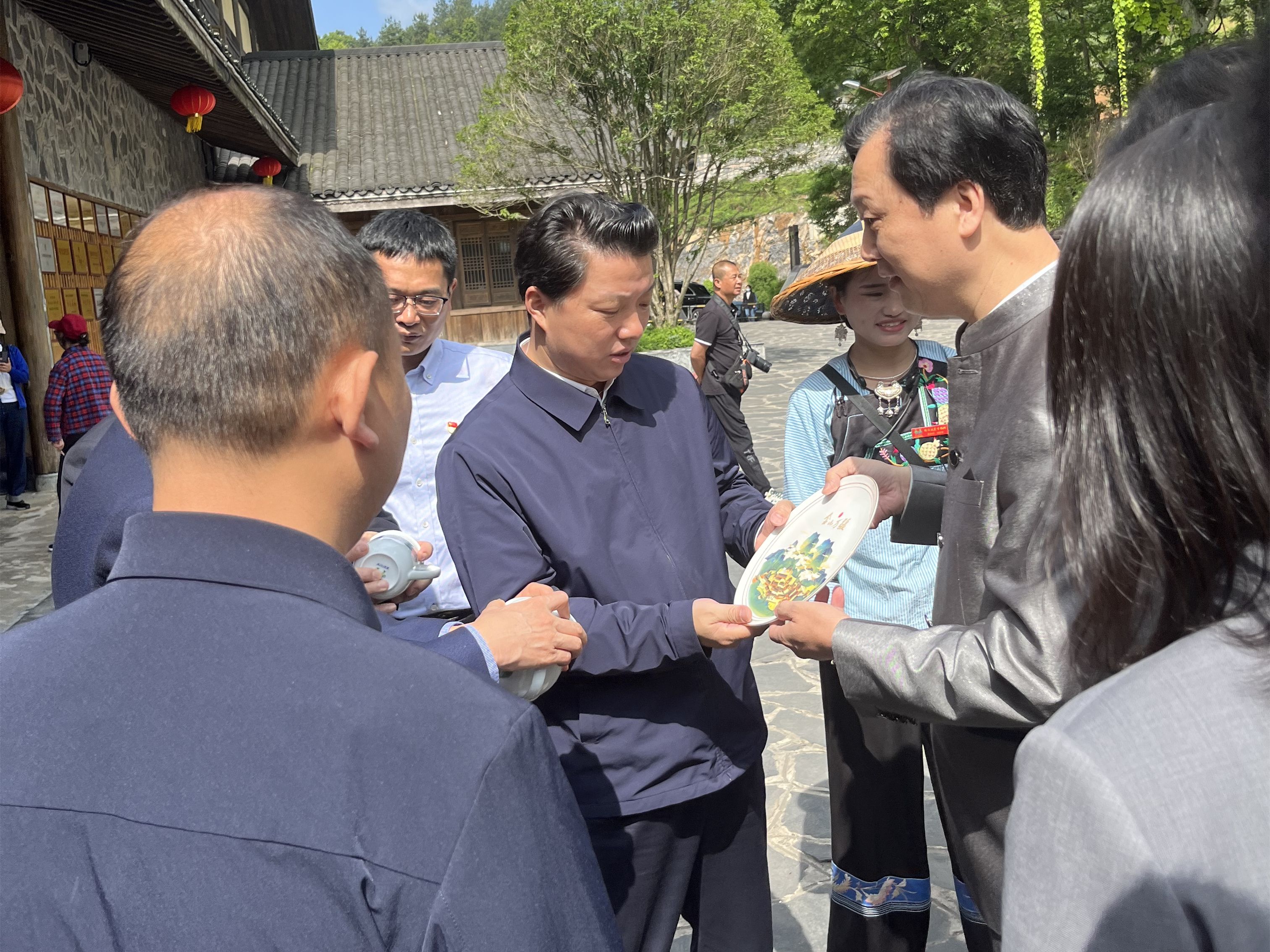 劉彬調研員發言:受省文旅廳黨組書記、廳長李愛武的指派,來到金山環繞的十八洞村,親眼見證大球泥瓷藝與十八洞村開展深度合作。他充分肯定雙方共同打造雙品牌營銷模式,就陶瓷文創產品助力鄉村振興產業的新興業態,用實際行動開創了文化產品賦能鄉村振興的先河,這種產業合作功在當代、利在千秋,將有力推動全省文化產業融合鄉村振興工作的蓬勃發展。